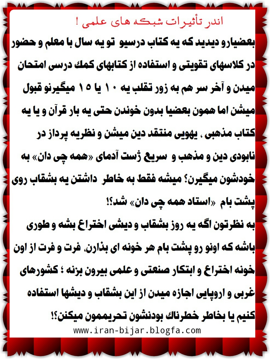 این مجموعه تصاویر ، متعلق به وبلاگ IRAN-BIJAR می باشد.